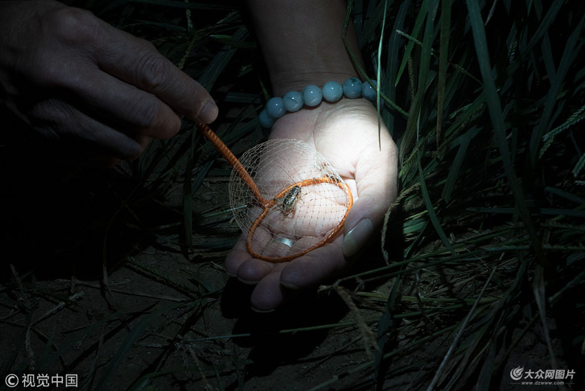晚上六點(diǎn)一刻,趙文革吃了兩個(gè)韭菜盒子,帶上頭燈、捕具和衣服,驅(qū)車趕往三十里之外的一塊玉米地。一路上輕車熟路,還沒到地方,遠(yuǎn)遠(yuǎn)地就見幾簇白光上下閃爍。“今天我們來的稍微晚了點(diǎn),這個(gè)季節(jié),六點(diǎn)左右蟋蟀就出來覓食了。”
