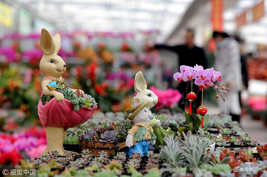 2018年2月6日,在青島李村大集花卉市場上銷售的多肉植物。