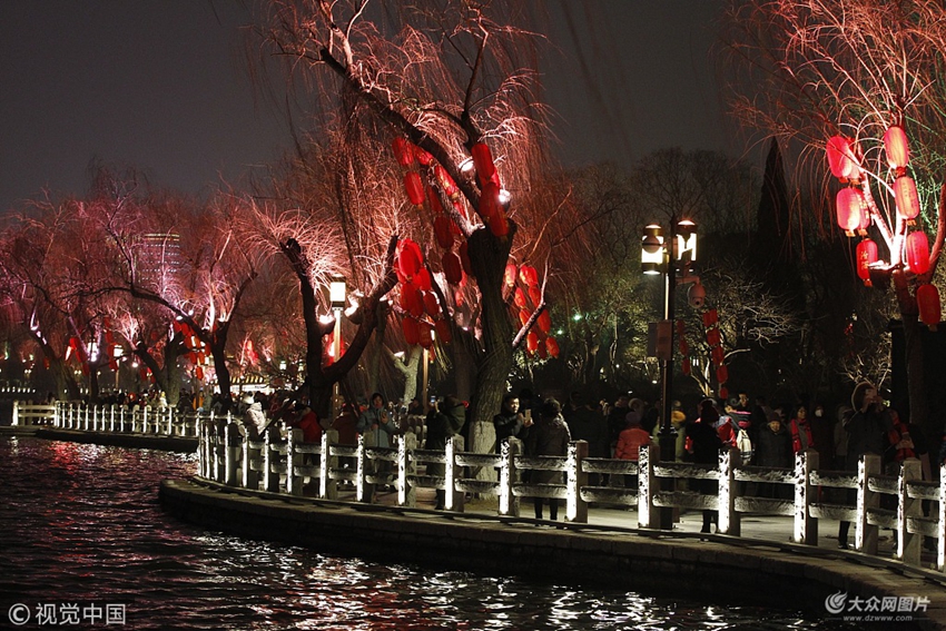 2018年2月22日,濟南,夜幕降臨后大明湖景區的萬余盞彩燈全部點亮,美輪美奐。