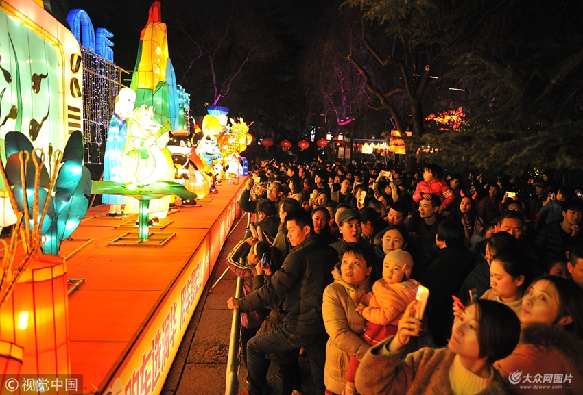 2018年3月2日,山東省濟南市,農歷正月十五元宵佳節,濟南趵突泉公園內人潮鼎沸,數萬游客前來賞花燈、鬧元宵。