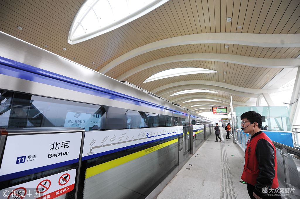 2018年4月23日上午,被譽為“青島最美地鐵線”的青島地鐵11號線正式開通試運營。圖片作者:劉小偉/視覺中國