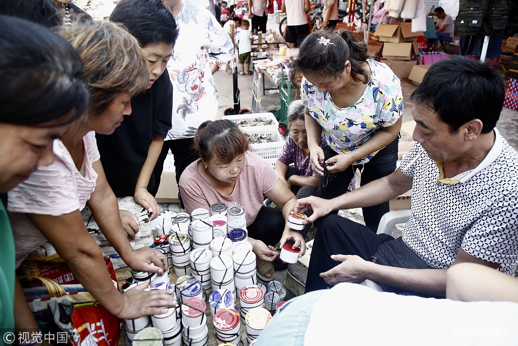 2018年8月15日,山東泰安,蟋蟀集市。圖片作者:蟋都/視覺中國