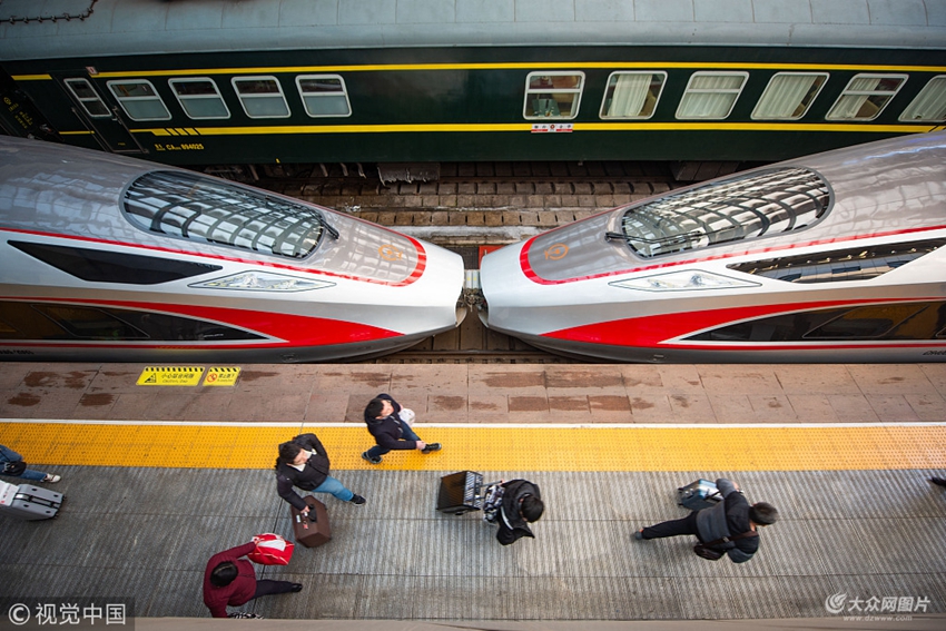 2019年1月5日,在山東煙臺火車站,乘客準備乘坐煙臺開往上海的G462復興號列車。