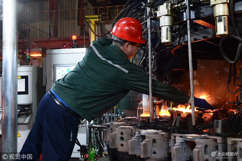 2019年1月8日,山東威海,榮成市石島管理區工業園的玻璃制品生產車間內,玻璃器皿生產線高速運轉,車間工人們正在趕制節日用高腳杯等玻璃制品,供應節日市場。