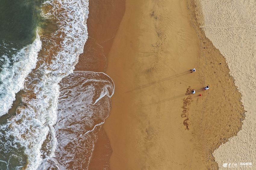 2019年6月3日,山東青島西海岸新區銀沙灘海浪翻卷,波濤排著隊伍撲向海岸, 海浪親吻沙灘時猶如畫師作畫,把斑斕多彩的生態畫卷留在了海濱。