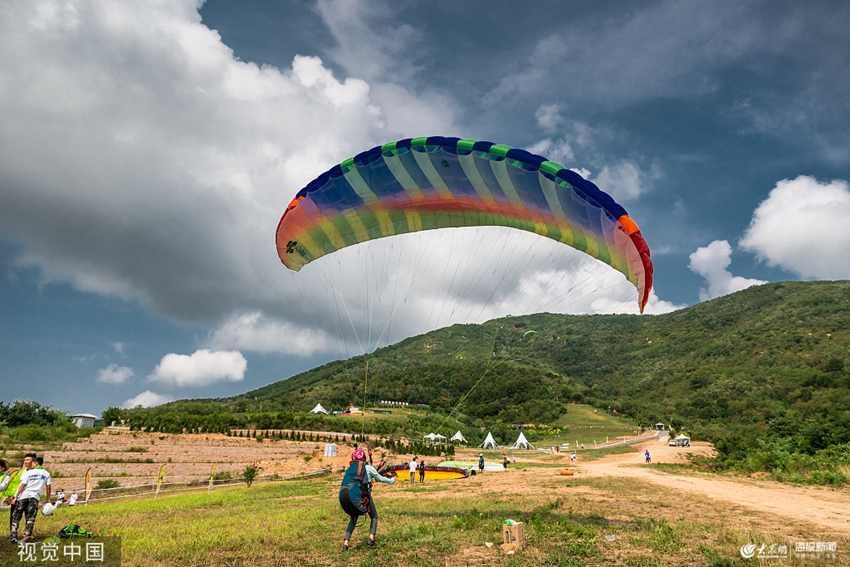 2019年8月4日,青島,2019伊卡洛斯國際飛行節現場圖。據了解,首屆全球青少年航空科普教育論壇暨2019伊卡洛斯中國國際飛行節將于8月1日至8月4日在青島舉辦,此次伊卡洛斯國際飛行節是第二次在中國舉辦。伊卡洛斯飛行節1974年9月在法國圣伊萊爾小鎮誕生,吸引了來自世界各地的數百萬飛行愛好者,已經成為全球影響力最大的自由飛行大會。2018年,伊卡洛斯第一次走進中國,并成功舉辦了伊卡洛斯中國祁連國際飛行節。