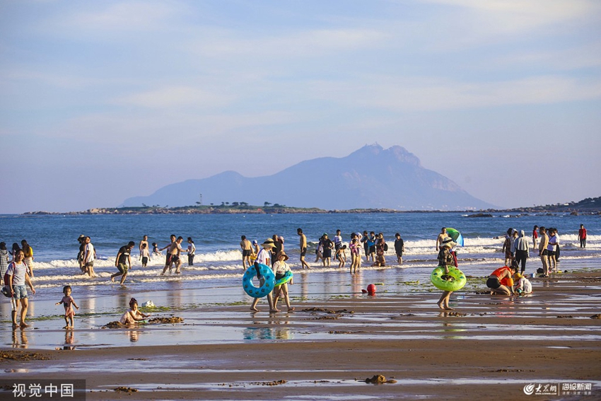 2019年8月6日,青島,西海岸新區銀沙灘海濱灘平水清,風光旖旎,避暑納涼的各地游人在這里沖浪戲水,歡聲笑語不斷。