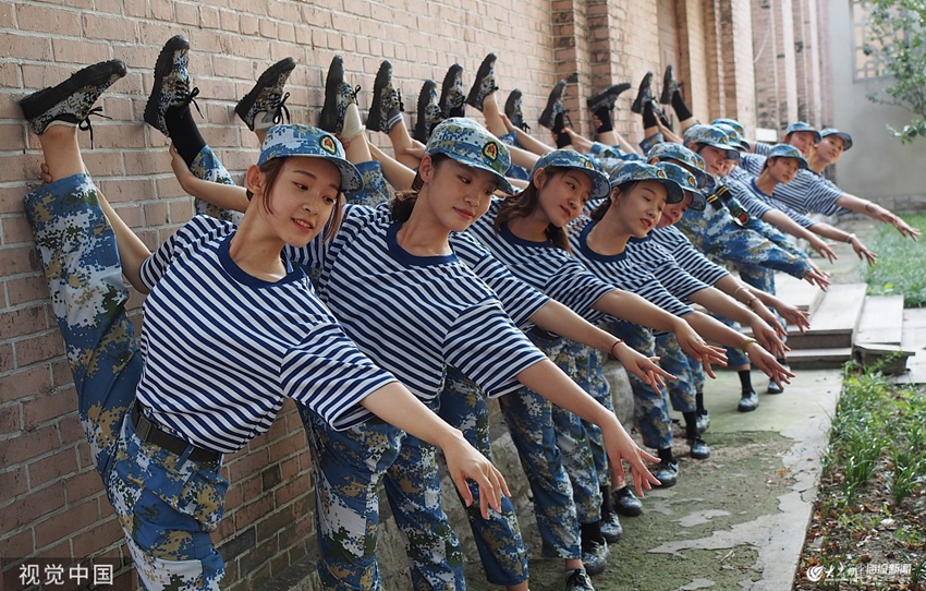2019年9月3日,濟南,山東師大千佛山校區,新生們開始了一年一度的軍訓。其中舞蹈女生們姿態優雅,動作標準。她們還利用軍訓間隙進行舞蹈熱身以便保持狀態,向同學們展示扎實的基本功。