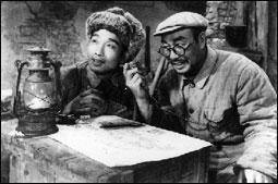 導(dǎo)演崔嵬在《老兵新傳》中飾戰(zhàn)場長(右)