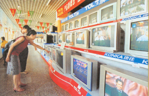 農民收入穩步提高。2001年,全省農民人均收入達2804.5元,比上一年增長5.5%。農民人均生活消費支出1905元,增長7.6%。全省農村居民人均居住面積為24.6平方米。全省農村居民每百戶家庭擁有彩色電視機56.3臺、電冰箱17.7臺、電話機58.3部、收錄機18.9臺、洗衣機17.1臺、電風扇155.6臺、照相機5.0架。 ◆家電超市