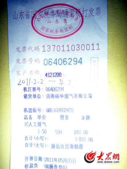 王女士說,無奈之下,自己讓朋友給交了費。但拿到發票后,立刻產生了天方夜譚的感覺:2月2日到4月2日,竟然用了594立方氣,收費達891元。王女士查詢了有關資料,按照這個收費,平均每天要用近10立方燃氣,可以燒開水535的暖瓶(2升)。如果按照這個用量,每天要不斷地燒50多個小時的開水。