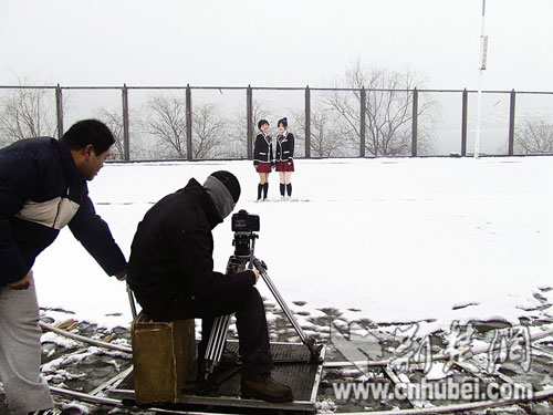 擔任導演的是該校2007屆畢業生殷博。殷博大學期間拍攝的電影《星星相愿》曾獲“武漢大學生DV大賽二等獎”。冰天雪地里,工作人員搬來設備,在雪地里鋪設攝影軌道,架設攝像機。兩個女大學生經過化妝后走進雪地,頂著寒風在攝像機前放聲歌唱:“你說,我不是故意那么倔強,選擇了陌生的方向;你是否和我一樣,有過不被欣賞的夢想……”(楚天都市報記者徐嘯寒攝 通訊員張志成) (來源:荊楚網)
