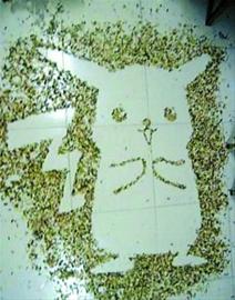 從幾幅畫中的地板相同、背景頗像學校宿舍來看,應在同一場所拍攝,作者或許是春節沒有回家的大學生?梢源_定的是,這位網友相當有才,想到將瓜子殼廢物利用起來。以地面為畫布,以瓜子殼做“沙”,經作者的一番妙手后,“輕音少女”、“海綿寶寶”、“皮卡丘”等卡通形象便躍然地上,成就了一幅幅特別的“沙畫”。不過,卡通形象繪畫并非這組繪畫的最出彩之作,令廣大網友大呼“寂寞”的乃是一幅“人影”瓜子畫。只見燈光下,一黑衣男子挺拔站立,在地面投下影子一片;而大量瓜子殼不多不少、邊緣清晰地填入了這片影子,還原出人影的形狀。黑衣人身與棕黃色瓜子殼人影相映襯,寂寞之感油然而生。