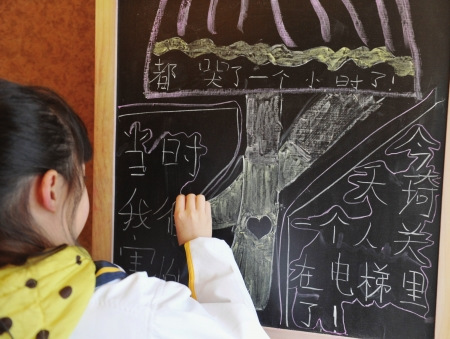 7歲女孩被困電梯一小時 畫粉筆畫記錄情景