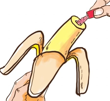 香蕉派:拿一截香蕉挖洞,把藥粉倒進(jìn)去,吞掉。