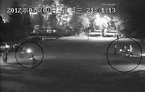 5月10日,記者采訪時(shí),從學(xué)校中心廣場(chǎng)當(dāng)晚的監(jiān)控錄像中看到,三男女駕駛摩托車到達(dá)中心廣場(chǎng)后,女青年先行下車,隨后兩名男青年便在廣場(chǎng)上玩起了“車技”,經(jīng)過廣場(chǎng)的老師學(xué)生紛紛躲避。