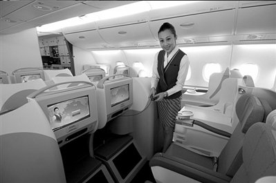記者昨晚查詢了一下國(guó)航官網(wǎng),10月27日京滬線機(jī)票頭等艙(等于A380豪華頭等艙)折后價(jià)格大概為2530元,比A380低了600元左右。