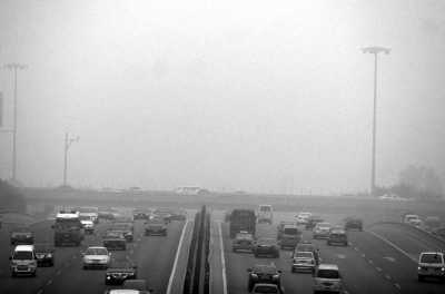 霧霾天里的北京高速路。 卓恩森攝(新華社發(fā))