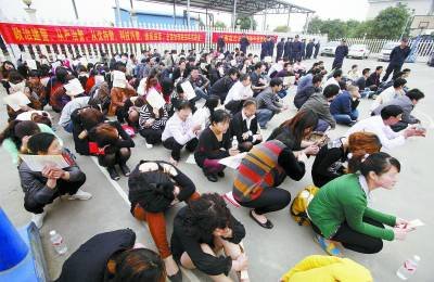 4月7日,南寧,上百名傳銷者集中接受警方調查。自當日起,警方組織綜治、公檢法司及工商等部門力量,在南寧開展清查整治傳銷活動。