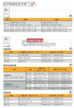 在上海市的季度用電量考核方案中,冬夏用電高峰時(shí)期,第一檔電量定在了350度,而非高峰時(shí)期第一檔電量定在了210度。并且上海市的三種電價(jià)聽證方案中,無論是以月度計(jì)量,季節(jié)性計(jì)量,或是以年度計(jì)量,都考慮了“平時(shí)段”(6時(shí)至22時(shí))和“谷時(shí)段”(22時(shí)至次日凌晨6時(shí))的價(jià)格差異,前者為0.617元/度,后者為0.307元/度。