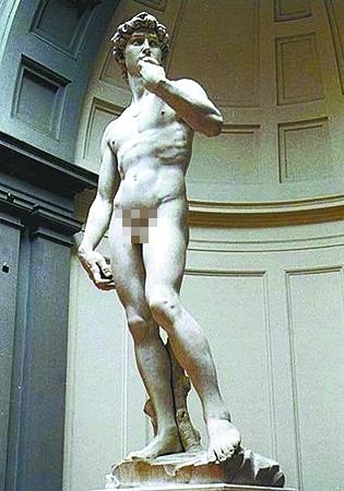 去年的11月中旬,《武漢晚報》報道過湖北美術學院門口的全裸女性畫像遭指責。當時,美術館館長稱將此畫像推介出來是為提高人們藝術審美鑒賞水平。如果說館長的說法大體上代表了這個時代對人體藝術比較正常的態度。那么,央視在大衛身上打馬賽克這一反常舉動就很難解釋。唯一能說得通的,恐怕還要往節目制作人員的幽默感上尋找原因:他們或許正面對著一個頗為嚴格而讓他們有些不滿的“暴露尺度標準”,最好的抗議方式莫過于在一個特殊的場景下——比如面對《大衛》雕像時——去嚴格遵循這個標準。按這個角度理解,《大衛》身上的馬賽克是某個不甘沉默的人在用荒謬來對抗現實,用瘋癲來對抗權勢,中國文化傳統中“佯狂”是也。