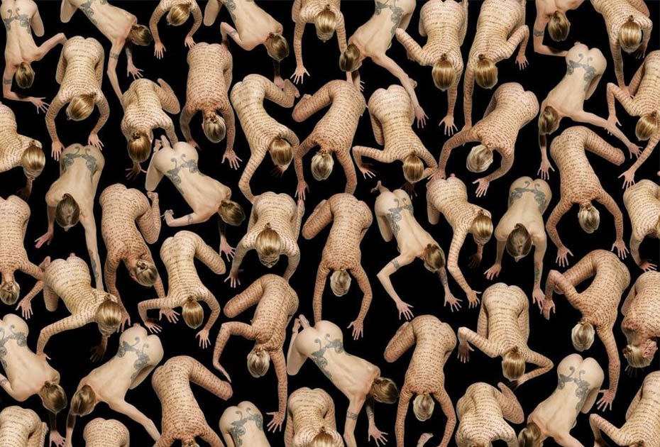 德國藝術家、攝影師Claudia Rogge,他非常癡迷圖案造型,也許你喜歡的圖案是類似于花紋或者墻紙那種,但他卻喜歡用人來組合圖案造型。他的這種癡迷促使他完成這個大手筆的制作:大量的模特擺著相似的姿勢,穿著相同的衣服,組成了稍顯恐怖的人體圖案。不可否認的是,他的部分作品使用了后期特效。