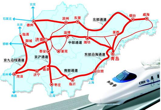另據山東省發改委,十三五期間,山東將全面啟動環山東半島城市群高鐵網規劃建設,重點建設濟青高鐵、魯南高鐵、濟南至聊城、濰坊至萊西以及濟南至濱州、東營等高鐵項目,建成兩橫兩縱高鐵網!基本形成以濟南、青島為中心的三小時內高速鐵路交通圈。