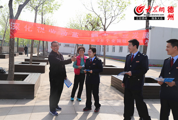 德州市國稅局工作人員走上街頭,宣傳“營改增”政策。