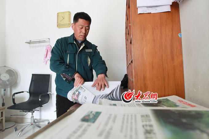 顧業(yè)民正在分撿報紙