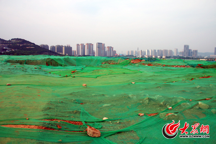 24日下午,大眾網記者來到位于經十路南側的田莊村拆遷片區,發現之前的房屋建筑已經全部拆遷完畢,只剩一大片平整的土地,在綠色防護網的仔細遮蓋下顯得十分壯觀。
