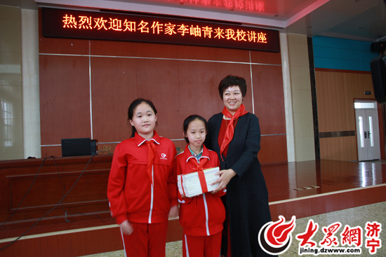 據了解,李岫青是山東省知名兒童文學作家,2005年開始兒童文學創作,其作品《小銀鼠與幻想大王》獲得2008年度冰心兒童文學新作獎,長篇幻想小說也深受小讀者喜愛。在為四年級學生開展的作文講座中,李岫青告訴孩子們,平時要注意觀察生活的細節,寫作時要展開奇幻想象的翅膀。鼓勵學生大膽動筆,只要勤加練習,寫作水平一定會越來越高。