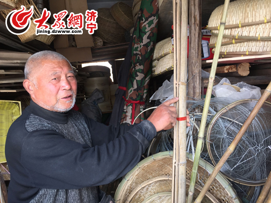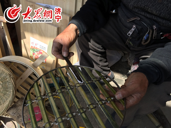 在濟寧市城區,竹竿巷算是當地數得著的老巷子了,由首尾相連的五條街巷構成,是以經營竹編、土產、雜貨等為主的手工業作坊區。張步升老人便在這里做了20多年的竹編手工生意,最拿手的是籠屜和籮。花白的胡茬、干裂發黑的掌紋,還有泛著光澤的木頭刨子,都在無聲地訴說著這位老人的故事。