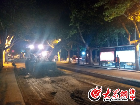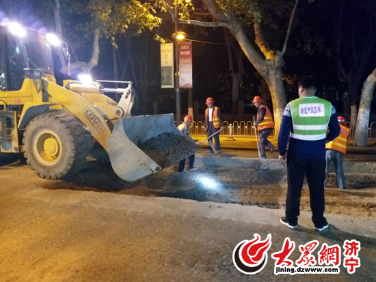 大眾網濟寧5月10日訊(記者 李丹)5月9日晚上9點45分,記者來到紅星路青少年宮路段的維修現場。告別了白天的車水馬龍,夜晚的施工現場異常忙碌。