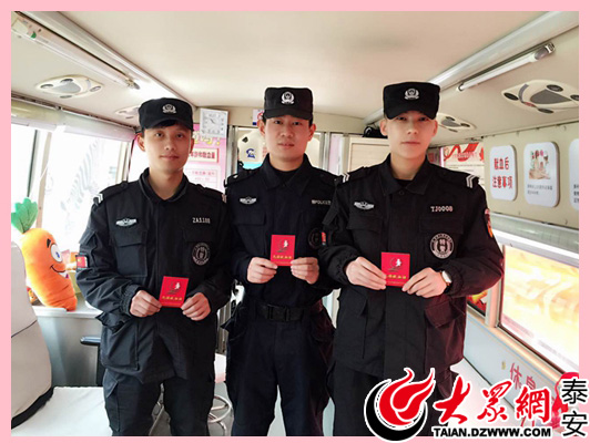 泰安市火車站站前派出所3名90后特警情人節(jié)獻(xiàn)血(陳琛 攝影)