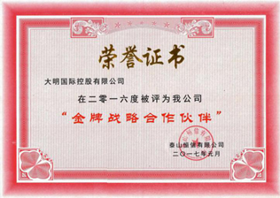 大明從客戶的需求出發(fā),依托齊全的鋼種資源、先進(jìn)的加工設(shè)備、成熟的“一站式”服務(wù)模式,受到了泰山恒信有限公司的青睞。在2017年初,泰山恒信有限公司向大明國際頒發(fā)了“金牌戰(zhàn)略合作伙伴”的證書,以表示對大明高精度產(chǎn)品和及時(shí)、周到服務(wù)的認(rèn)可。未來,隨著大明泰安加工中心項(xiàng)目的建成,必將推動(dòng)雙方的合作進(jìn)入更廣、更深的層次。