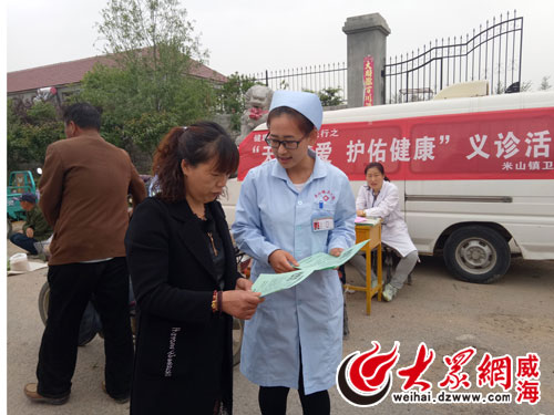 大眾網(wǎng)威海5月9日訊 (通訊員 曹美茹 記者 孫琳) 為迎接“5.12”國際護(hù)士節(jié),弘揚(yáng)南丁格爾精神,展示護(hù)士良好的職業(yè)形象,提高百姓的疾病防護(hù)和保健意識,近日,威海市文登區(qū)米山鎮(zhèn)衛(wèi)生院組織了“天使有愛 護(hù)佑健康”義診活動。