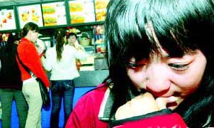 25日,在麥當勞餐廳北站店內,一名女大學生等待就餐時被老鼠咬傷,被咬傷后一直害怕,對媽媽說:“我會死嗎?”