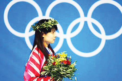 在鮮艷的五星紅旗和雄壯的國歌襯托下,這位22歲的中國姑娘越