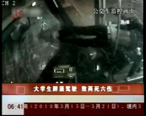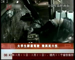 昨日,黃石市交警支隊相關負責人介紹,當晚9時36分,黃石理工學院學生謝某醉酒后,駕駛一輛深圳號牌的現代牌小車,由市政府路口往磁湖路方向行駛。途經桂林北路理工學院中門路段時,先撞上行人后與公交車相撞,致使1名行人和公交車上的1名乘客死亡,另有6人受傷。