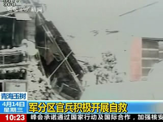 據(jù)中國(guó)地震臺(tái)網(wǎng)中心消息,北京時(shí)間2010年04月14日07時(shí)49分許,青海省玉樹(shù)藏族自治州玉樹(shù)縣(北緯33.1,東經(jīng)96.7)發(fā)生7.1級(jí)地震,震源深度33千米。之后又連續(xù)發(fā)生三次余震。我們剛剛拿到武警部隊(duì)傳來(lái)的畫(huà)面,讓我們來(lái)看看玉樹(shù)當(dāng)?shù)匕l(fā)生的情況。