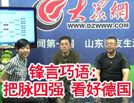 大眾網(wǎng)濟(jì)南7月9日訊(記者 隋喬)隨著2010南非世界杯走到尾聲,各種花絮也是女人們熱議的話題。大眾網(wǎng)世界杯特別欄目《鋒言巧語(yǔ)》特別期“女人熱侃世界杯八大花樣”與網(wǎng)友見(jiàn)面了。都談了什么有趣的話題呢?讓美女球迷們?yōu)槟告傅纴?lái)。