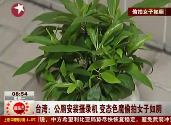 我們經(jīng)常能看到公共廁所有些盆栽假花,竟然有色狼利用這個(gè),在女廁所安裝監(jiān)視器偷拍女子如廁。