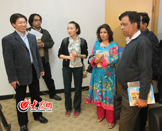 兩國客人參觀了大眾網文化墻、手機報、論壇、微博、采編及外語頻道編輯部,大眾網董事長、總經理林忠禮介紹了網站運行情況。兩國客人對大眾網新聞采編、網友互動、手機媒體及外語頻道給予高度評價,并希望雙方加強交流合作。