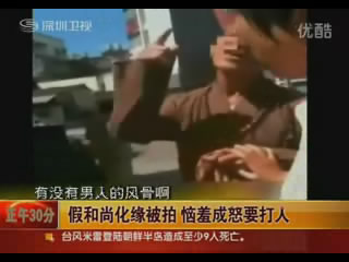 在寺廟口常常可以看到出家人化緣,但是在臺灣新竹竹蓮寺門口,有一 位假和尚化緣被拍,竟惱羞成怒要打人。