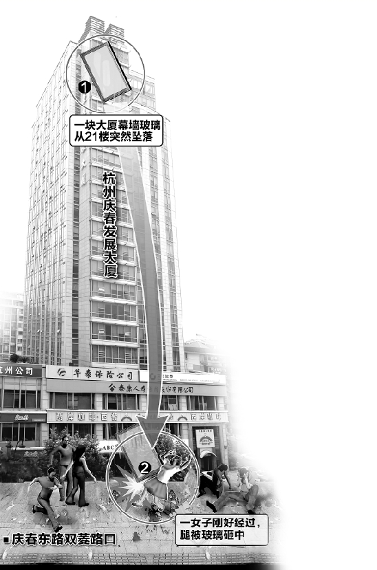 昨天早上7點多,杭州慶春東路,慶春發展大廈一片外墻玻璃突然從空中掉落,正從樓下經過的女孩不幸中招,將面臨可能被截肢的命運。