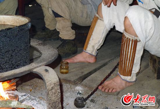 歐得得腿上的竹護腿是防蛇的。