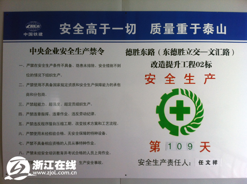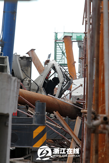 拆除工程由中鐵二十四局集團浙江工程有限公司負責,3個月前開工,還是杭州市建委的“平安工地”,已經安全生產109天。事故發生后,項目部大門緊閉,項目副經理梁曉峰稱正在開會研究,稍后再做說明。吊車所屬的杭州大力神公司工作人員在得知情況后,在電話中堅持表示所有機器都是達到安全標準的,絕不會引發鋼繩斷裂。