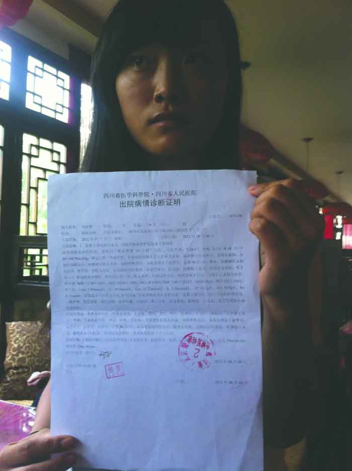 次日早上7時(shí)許,小馬再次出現(xiàn)吐血癥狀,并陷入昏迷。室友發(fā)現(xiàn)情況不對,連忙將她送往省醫(yī)院。醫(yī)院出具的病情診斷證明顯示,小馬屬于“急性上消化道出血”(俗稱胃出血)。小馬一共住了8天院,花費(fèi)了一萬多元醫(yī)藥費(fèi)。由于害怕父母擔(dān)心,她沒將此事告訴家人。小馬說,住院后,茶樓的大堂和主管都來醫(yī)院看過她,并且墊付了一部分醫(yī)藥費(fèi)。