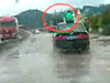 男子坐轎車(chē)頂部狂奔1...