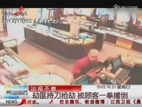 男子珠寶店持刀搶劫被顧客一拳撂倒